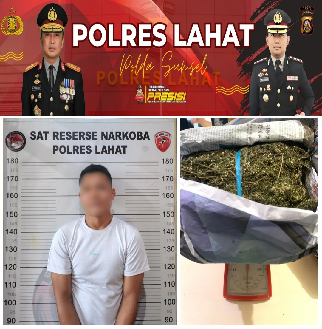 Satuan Reserse Narkoba Polres Lahat kembali menunjukkan komitmennya dalam memberantas peredaran narkotika di wilayah hukum Polres Lahat. Kali ini, Satresnarkoba berhasil mengamankan 1(satu) orang tersangka( pengedar) yang diduga terlibat dalam penyalahgunaan narkoba, jenis Ganja berdasarkan Laporan Polisi LP/A/33/IV/2026/Spkt.Narkoba/Polres Lahat/Polda Sumsel/ tanggal 21 april 2026. Tersangka atas nama PR bin L, 31 tahun, desa Penantian kec. Jarai kab. lahat. Penangkapan tersebut merupakan hasil dari penyelidikan intensif yang dilakukan oleh tim Unit Narkoba dan bantuan Informasi dari masyarakat.