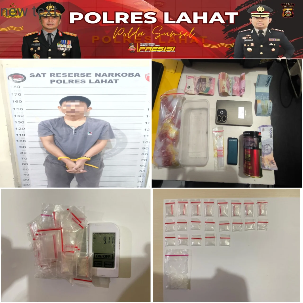 Satuan Reserse Narkoba Polres Lahat kembali menunjukkan komitmennya dalam memberantas peredaran narkotika di wilayah hukum Polres Lahat. Kali ini, Satresnarkoba berhasil mengamankan 1(satu) orang tersangka( pengedar) yang diduga terlibat dalam penyalahgunaan narkoba, jenis Sabu berdasarkan Laporan Polisi LP/A/27/IV/2026/Spkt.Narkoba/Polres Lahat/Polda Sumsel/ tanggal 09 april 2026. Tersangka atas nama H bin D, 46 tahun, desa Arahan kec. Merapi Timur kab. lahat. Penangkapan tersebut merupakan hasil dari penyelidikan intensif yang dilakukan oleh tim Unit Narkoba dan bantuan Informasi dari masyarakat.