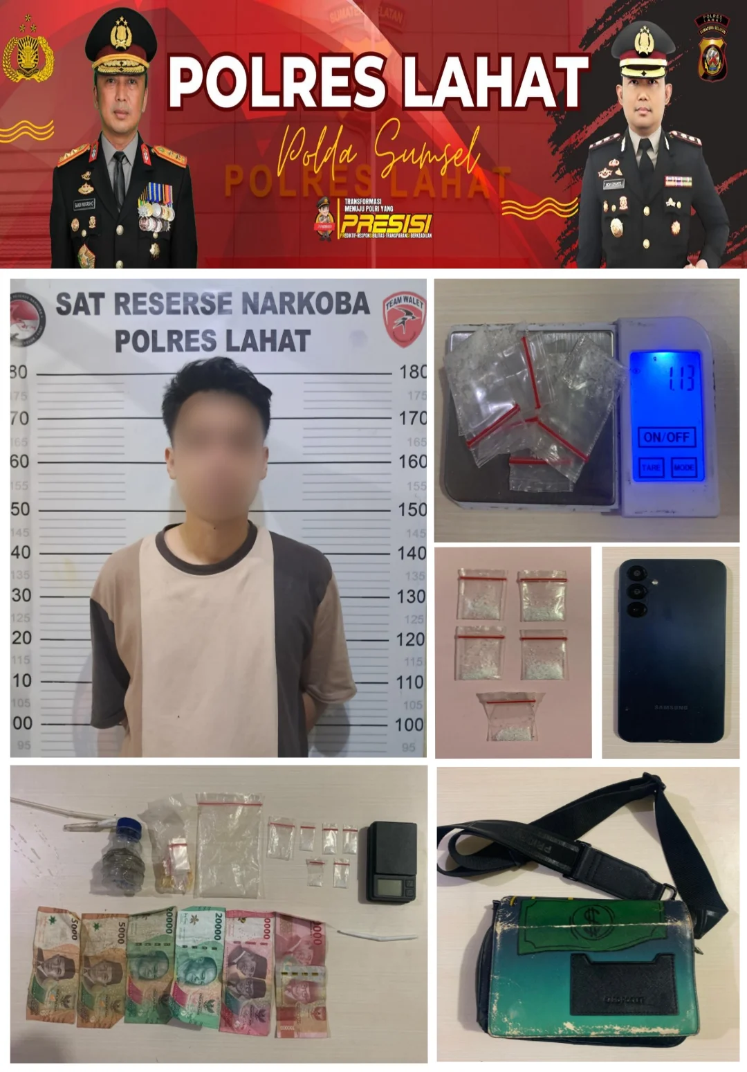 Satuan Reserse Narkoba Polres Lahat kembali menunjukkan komitmennya dalam memberantas peredaran narkotika di wilayah hukum Polres Lahat. Kali ini, Satresnarkoba berhasil mengamankan 1(satu) orang tersangka( pengedar) yang diduga terlibat dalam penyalahgunaan narkoba, jenis Sabu berdasarkan Laporan Polisi LP/A/30/IV/2026/Spkt.Narkoba/Polres Lahat/Polda Sumsel/ tanggal 15 april 2026. Tersangka atas nama MHRP bin H, 30 tahun, blok C kelurahan Bandar Agung kec. Lahat kab. lahat. Penangkapan tersebut merupakan hasil dari penyelidikan intensif yang dilakukan oleh tim Unit Narkoba dan bantuan Informasi dari masyarakat.