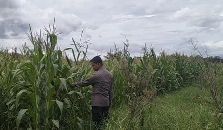 Bhabinkamtibmas melakukan pengecekan secara langsung di lahan pertanian jagung dengan mengamati kondisi tanaman, mulai dari pertumbuhan batang, daun, hingga potensi serangan hama. Kehadiran Bhabinkamtibmas juga menjadi bentuk kepedulian Polri terhadap sektor pertanian sebagai salah satu penopang utama ketahanan pangan nasional.