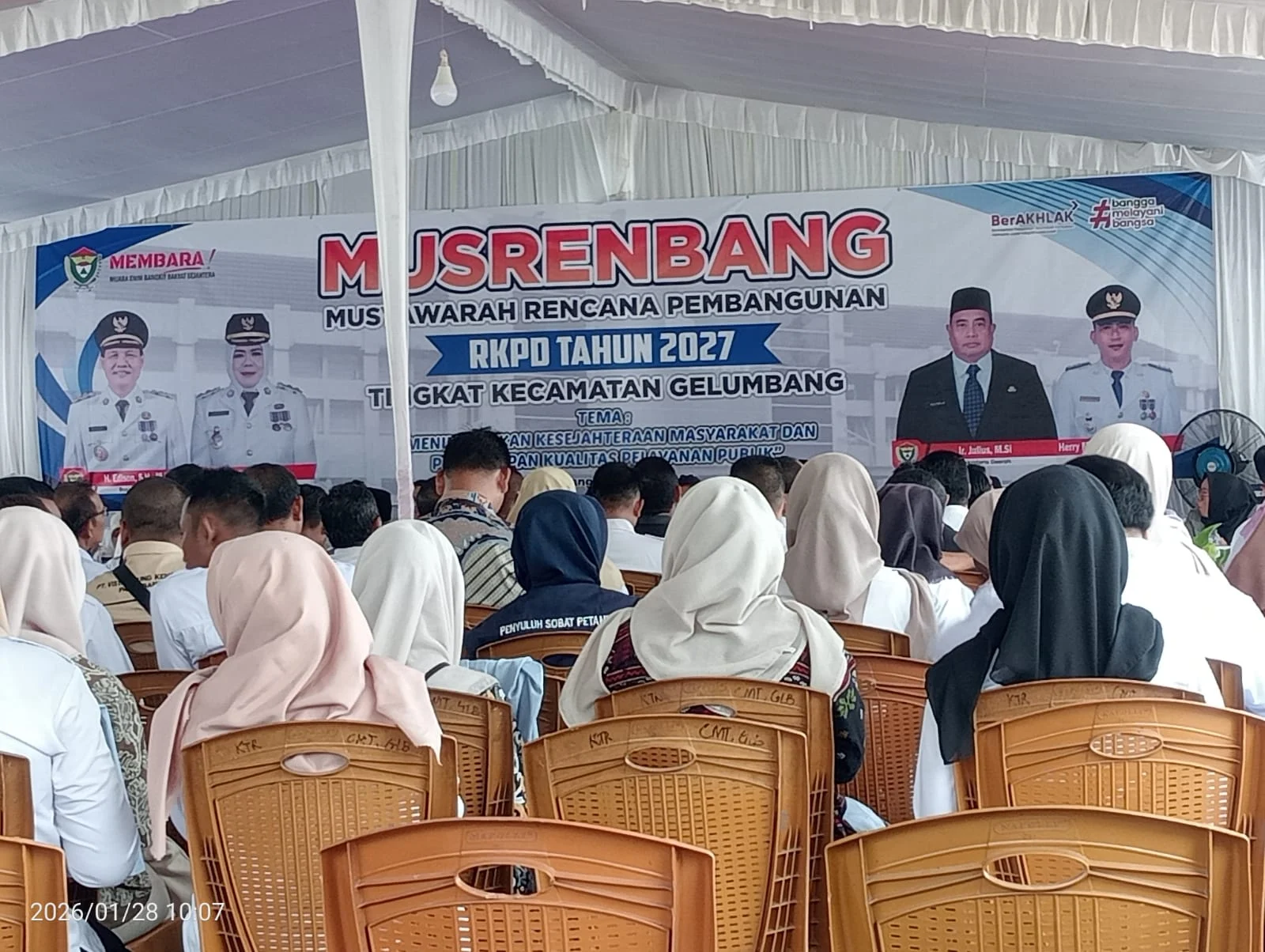Acara Musyawarah Rencana Pembangunan(Musrembang) Di Kecamatan gelumbang Di hadiri Oleh Bappeda, Anggota DPRD Muara Enim Mukarto, S.H, M Pasma Aji ST, dinas dinas terkait, Camat Gelumbang Herry mulyawan,SP,MM. Hadiono ,SH.Para Kepala Desa, Para Kepala Sekolah, BPD, PKK, staf Kecamatan Gelumbang, Tokoh Masyarakat, Tokoh Agama Dan Tamu Undangan Lainnya.