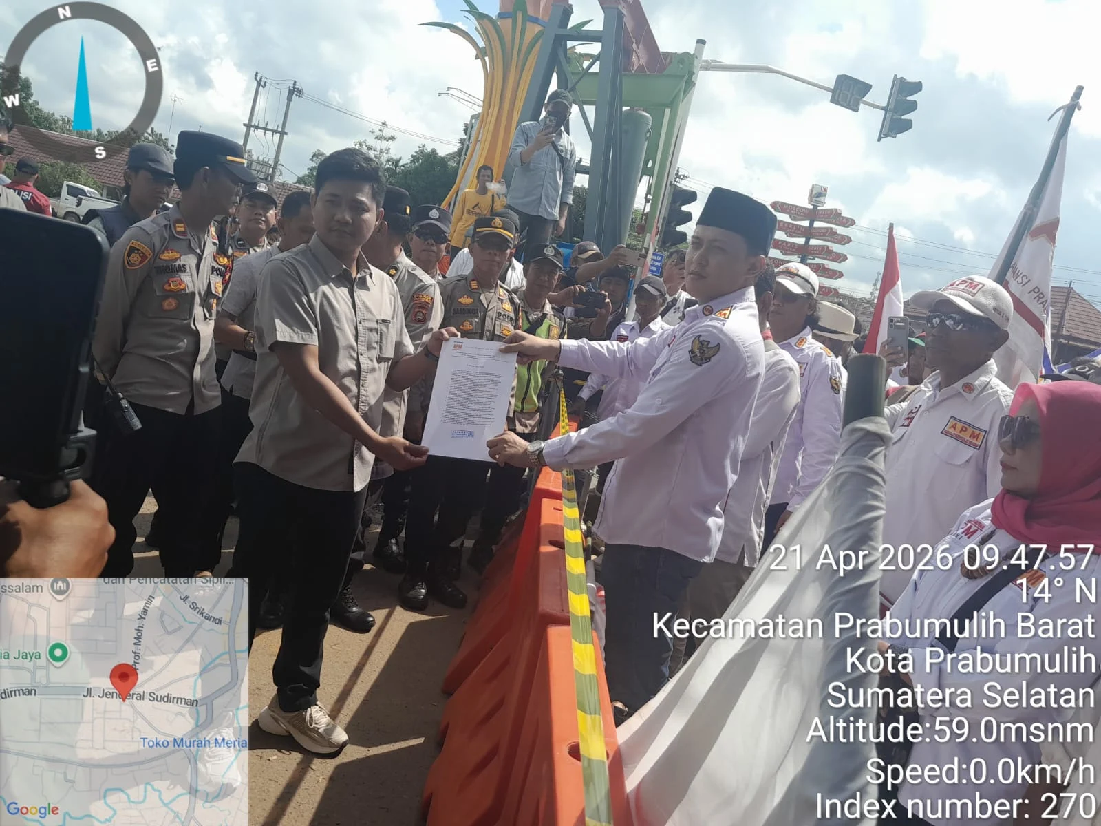 Aksi damai tersebut mendapat pengamanan ketat dari aparat gabungan, yakni personel kepolisian dari Polres Prabumulih serta unsur TNI dari Koramil Prabumulih dan Kodim Muara Enim, sehingga kegiatan berlangsung aman, tertib, dan kondusif.