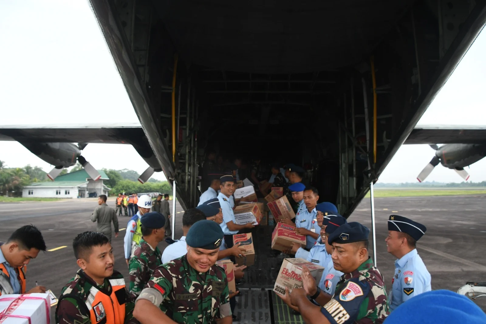 Pengiriman bantuan menggunakan pesawat TNI AU C-130 Hercules dengan registrasi A-1328, yang disiapkan untuk mengangkut total 14,5 ton bantuan hasil donasi dari TNI, Polri, pemerintah daerah, dan masyarakat Sumatera Selatan. Bantuan ini berisi berbagai kebutuhan dasar untuk membantu masyarakat yang saat ini tengah menghadapi masa pemulihan pascabencana.