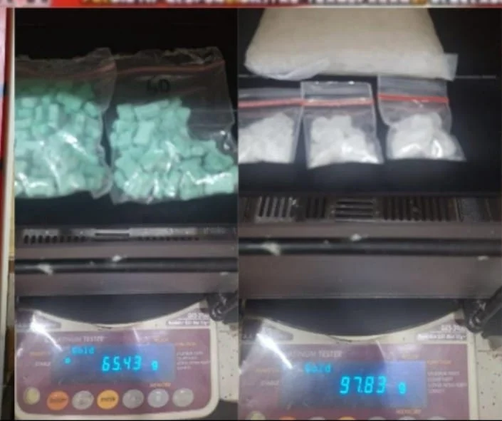 Saat dilakukan penggeledahan, petugas menemukan empat paket besar sabu dengan berat brutto 97,83 gram, 150 butir ekstasi seberat 65,43 gram, serta berbagai alat pendukung seperti plastik klip bening, kertas timah, dan tas selempang hitam tempat pelaku menyembunyikan barang haram tersebut. Bahkan, hasil tes urine menunjukkan positif mengandung narkotika.