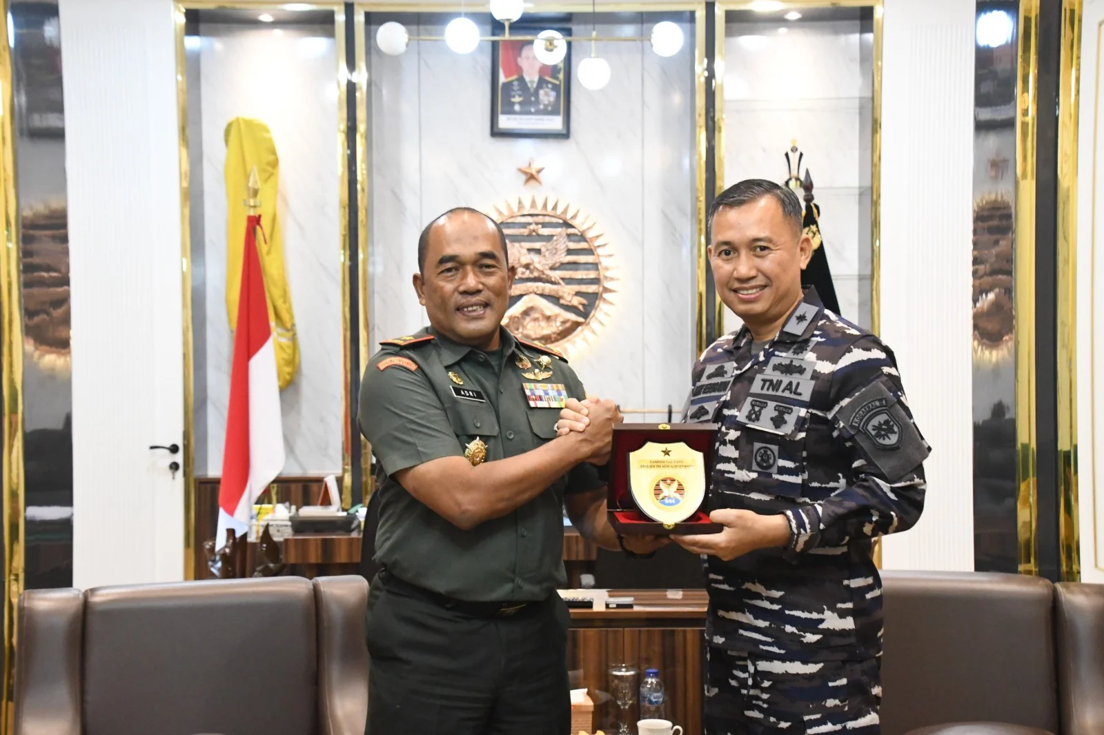 Pelembang –zonanusantara.my.id-Danrem 044/Gapo, Brigjen TNI Adri Koesdyanto, menerima kunjungan silaturahmi Komandan Pangkalan TNI Angkatan Laut (Danlanal) Palembang yang baru, Kolonel Laut (P) Arry Hendrawan, bertempat di Makorem 044/Gapo Palembang, Senin (5/1/2026).