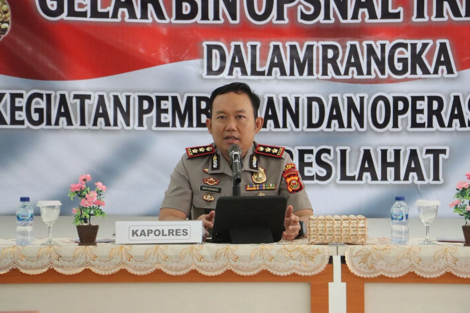 pada hari selasa 31 maret 2026, Kapolres Lahat AKBP Novi Edyanto SIK.MIK memimpin langsung pelaksanaan Gelar Bina Operasional (Bin Ops) Triwulan I tahun 2026, sebagai bagian dari kegiatan analisis dan evaluasi (Anev) pembinaan dan operasional. Kegiatan ini dilaksanakan sebagai bentuk komitmen dalam meningkatkan kinerja serta profesionalitas personel dalam menjalankan tugas kepolisian di wilayah hukum Polres Lahat. Kegiatan dihadiri dan diikuti Waka Polres Lahat, Kompol Liswan Nurhapis SH, seluruh pejabat utama, para kapolsek jajaran, serta perwira staf turut hadir dalam kegiatan tersebut.