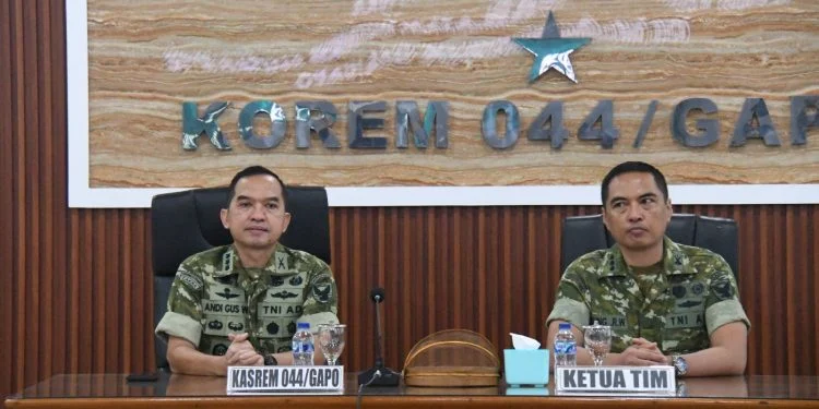 Palembang –zonanusantara.my.id-Dalam rangka serah terima jabatan Komandan Korem 044/Garuda Dempo, Tim Verifikasi dari Inspektorat Kodam II/Sriwijaya melaksanakan kegiatan verifikasi di Korem 044/Garuda Dempo, yang digelar di Aula Makorem 044/Gapo, Jumat (13/2/2026). Kegiatan ini merupakan bagian dari mekanisme organisasi TNI AD yang dilaksanakan secara tertib, transparan, dan akuntabel.