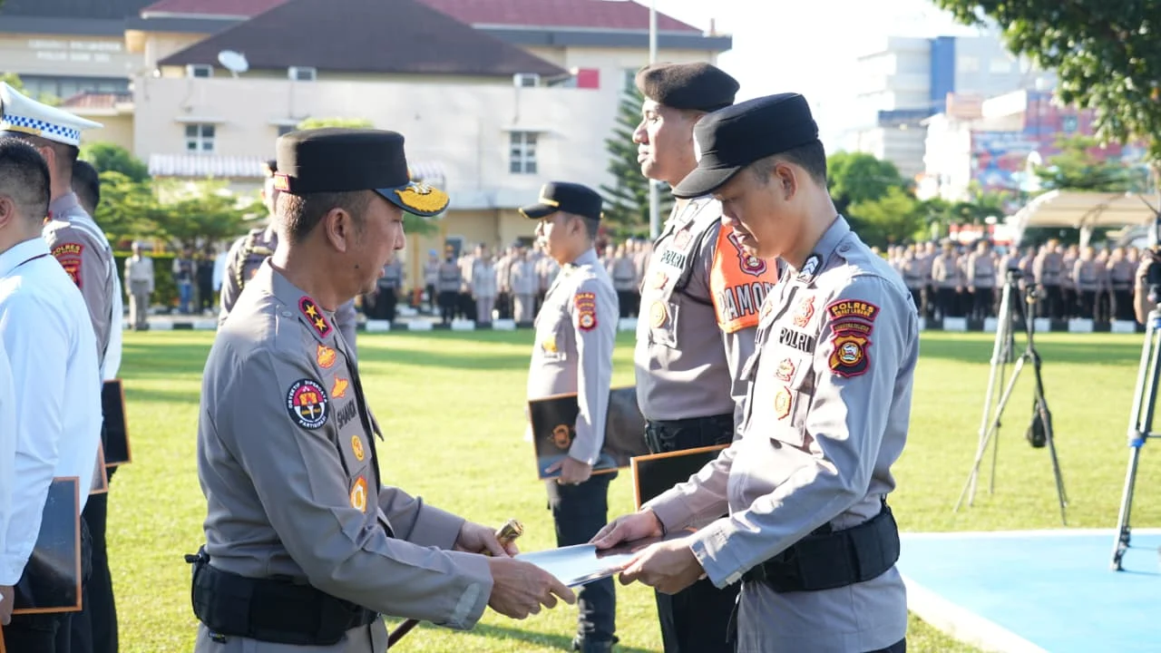 Kapolda Sumatera Selatan Irjen Pol Dr. Sandi Nugroho, S.I.K., S.H., M.Hum. memimpin Apel Pemberian Penghargaan kepada personel berprestasi di Lapangan Apel Mapolda Sumsel, Senin (13/4/2026) pukul 07.00 WIB. Sebanyak 48 personel dari berbagai satuan menerima penghargaan atas kinerja luar biasa di bidang penegakan hukum, pengabdian internasional, pelayanan kemanusiaan, hingga prestasi olahraga.