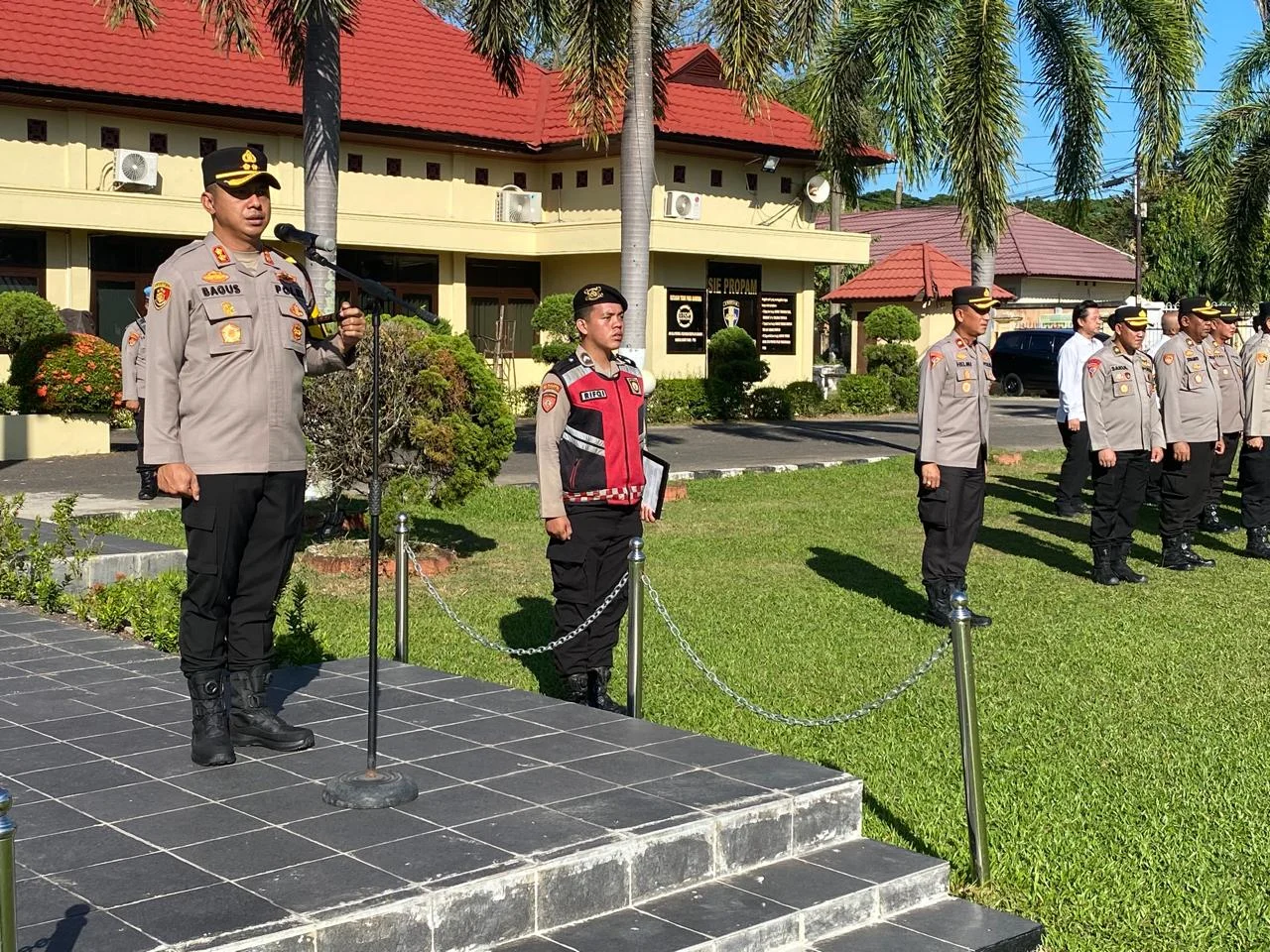 Dalam sambutannya, Kapolres mengawali dengan menyampaikan rasa syukur atas kesehatan dan kesempatan yang diberikan oleh Tuhan Yang Maha Esa sehingga seluruh personel dapat melaksanakan tugas dengan baik. Ia juga mengucapkan terima kasih dan apresiasi atas kehadiran seluruh anggota dalam apel tersebut.