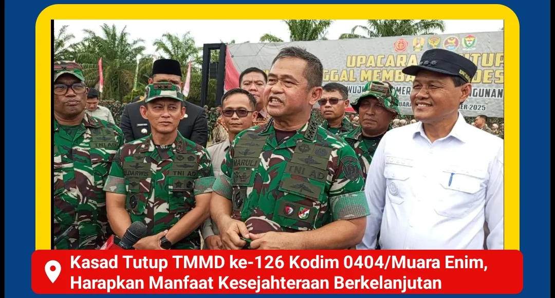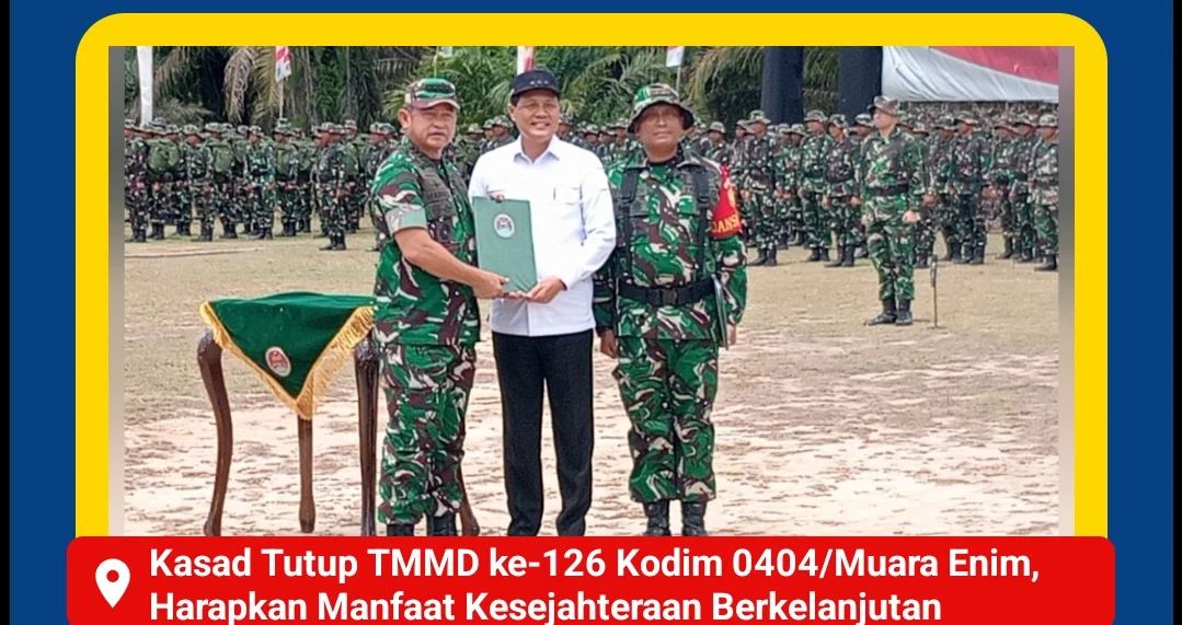 MUARA ENIM , Zonanusantara.my.id – Jejak pembangunan dan kebersamaan terukir di Muara Enim dalam program TMMD ke-126 TA 2025, yang secara resmi ditutup oleh Kasad Jenderal TNI Maruli Simanjuntak, M.Sc., Kamis (6/11/2025), dengan janji manfaat kesejahteraan yang berkelanjutan.