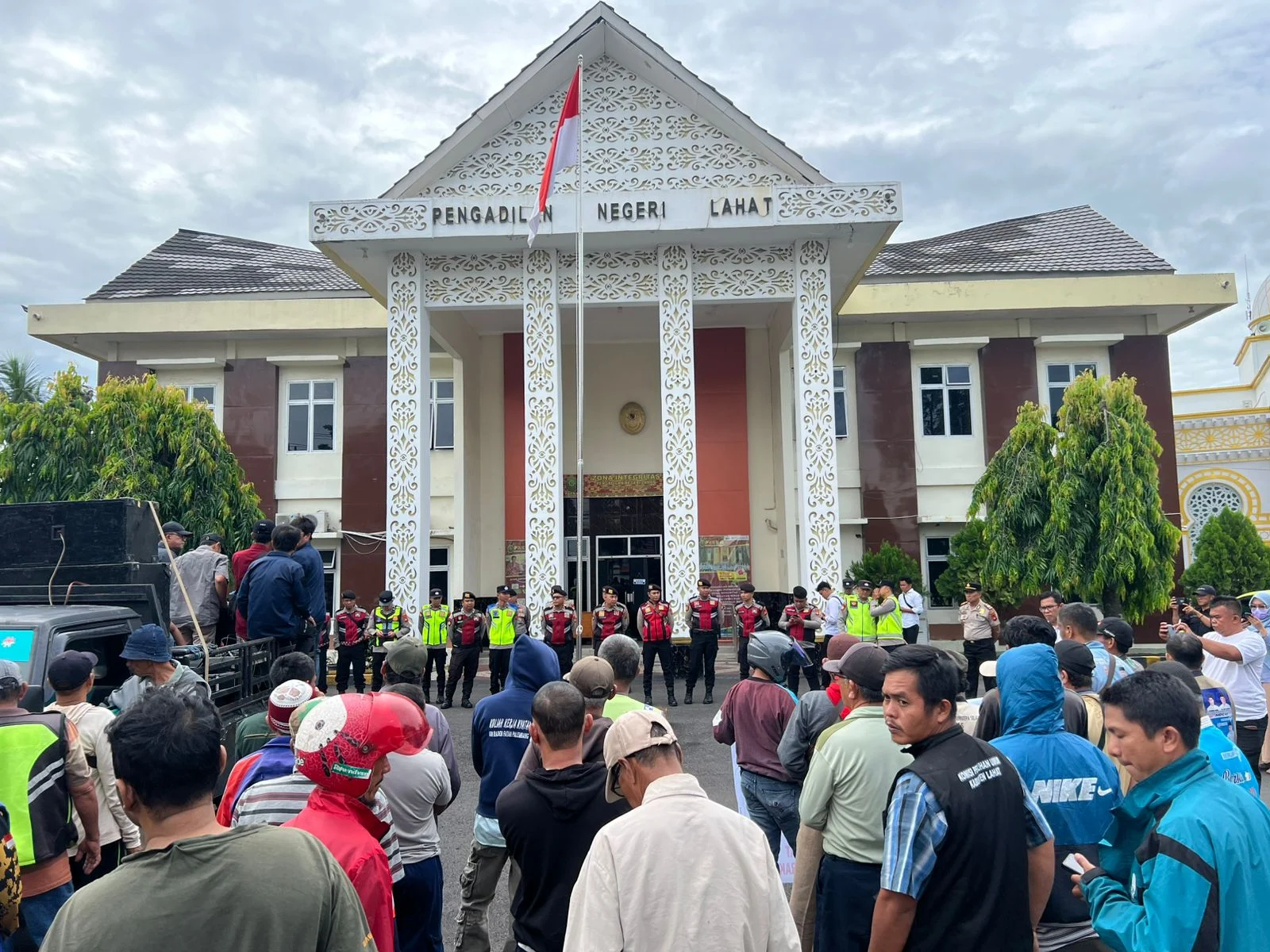 Humas Polres Lahat,zonanusantara.my.id- pada hari Senin tanggal 08 Desember 2025 pukul 09.30 WIB, personel Polres Lahat yang dipimpin Kasat Samapta AKP Heri Irawan SE.MM, yang didampingi Kapolsek Kota AKP Edy Surisno SH, dan personel gabungan Polres dan Polsek Kota, bertempat di Kantor Pengadilan Negeri Lahat dan Kantor Kejaksaan Negeri Lahat berlangsung aksi unjuk rasa Aliansi Lembaga Swadaya Masyarakat dan Media Peduli Lahat (A – LSM – PL) terkait Ambruknya jembatan muara lawai oleh Kendaraan Angkutan Batubara, Masih beroperasinya Kendaraan Angkutan Batubara diluar jam Operasional, meminta Pengadilan Negeri Lahat memberikan sanksi tegas kepada PT. Tri Mandiri Perkasa (TMP) PT. Tiga Putri Bersaudara (TPB) PT. Duta Bara Utama (DBU).