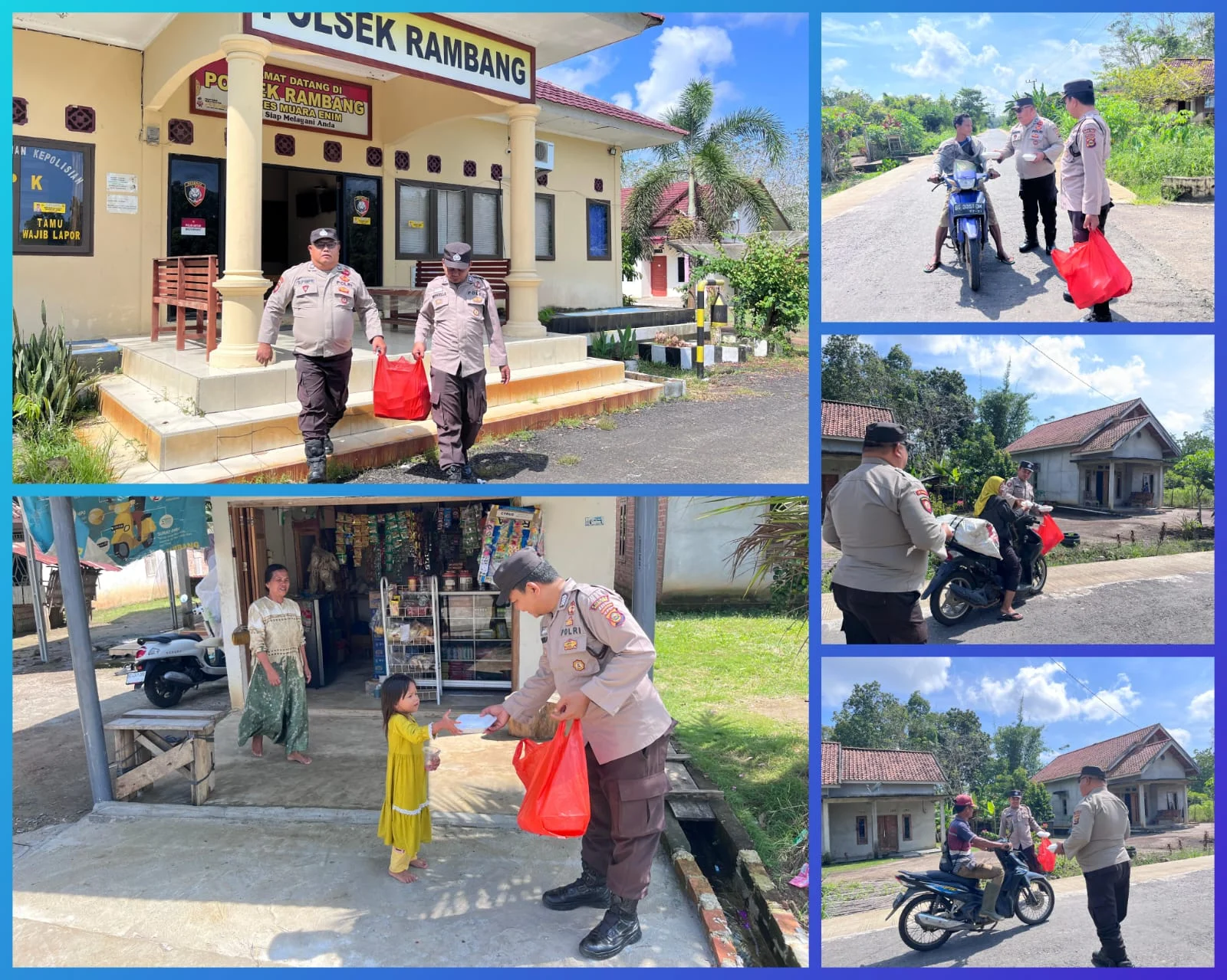Dalam rangka menumbuhkan rasa kepedulian dan berbagi kepada sesama, Polsek Rambang, Polres Muara Enim melaksanakan kegiatan Jumat Berkah dengan membagikan nasi kotak kepada masyarakat Desa Sugihwaras Barat, Kecamatan Rambang dan warga sekitar serta pengendara yang melintas. Jumat (17/4/2026) sekira pukul 10.00 Wib s/d selesai di depan Mako Polsek Rambang.