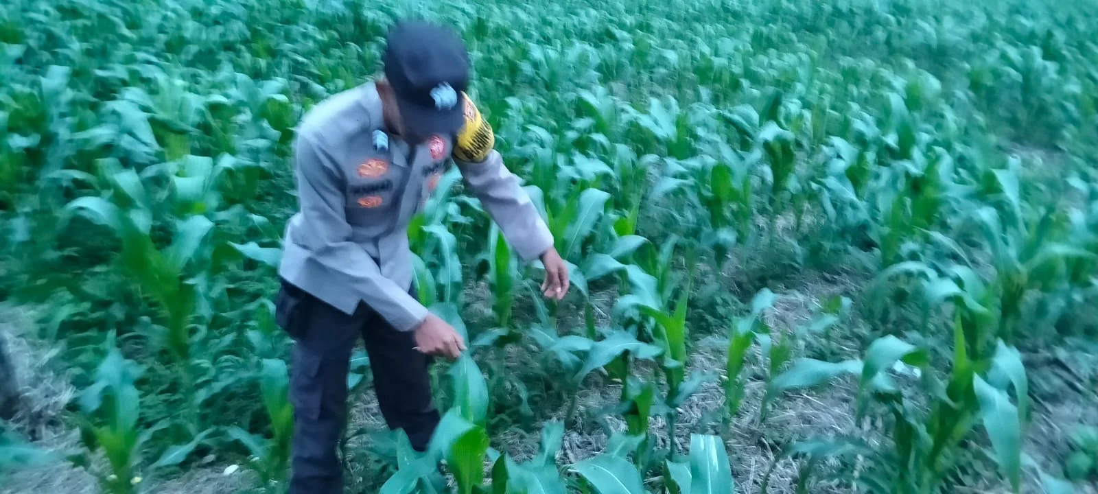 Bhabinkamtibmas melakukan pengecekan secara langsung di lahan pertanian jagung dengan mengamati kondisi tanaman, mulai dari pertumbuhan batang, daun, hingga potensi serangan hama. Kehadiran Bhabinkamtibmas juga menjadi bentuk kepedulian Polri terhadap sektor pertanian sebagai salah satu penopang utama ketahanan pangan nasional.