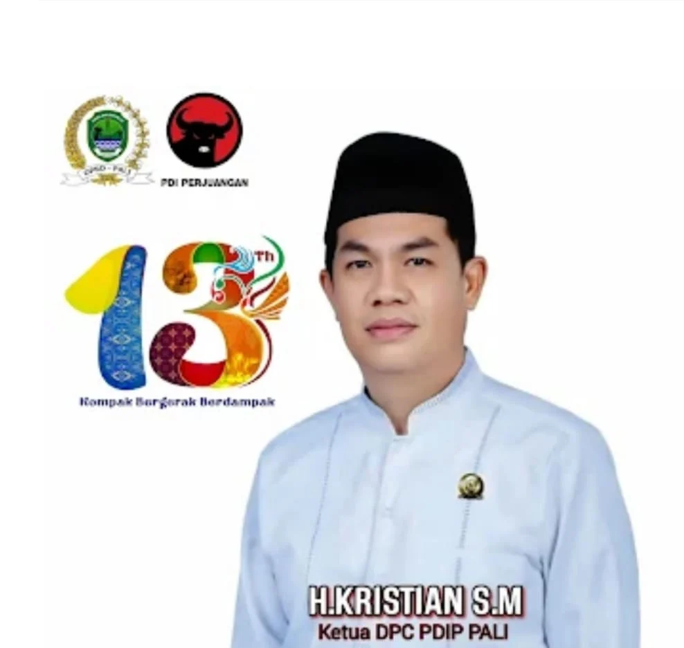 Ketua DPC PDIP PALI, H. Kristian, S.M., menyampaikan ucapan selamat Hari Ulang Tahun ke-13 Kabupaten PALI seraya menegaskan bahwa tema tahun ini, “Kompak Bergerak Berdampak”, merupakan refleksi sekaligus arah pembangunan ke depan.