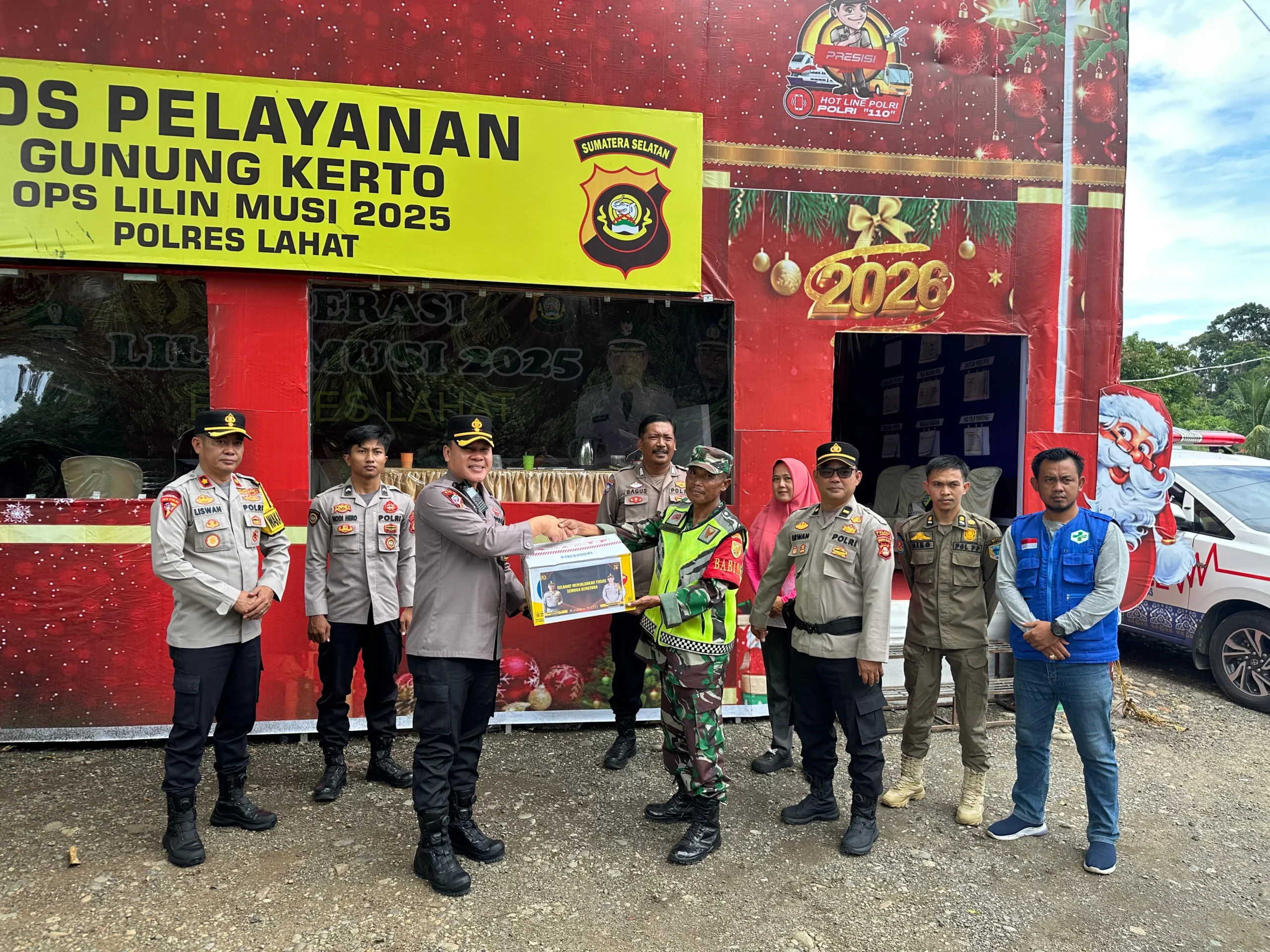 Humas PolresLahat,zonanusantara.my.id-pada hari sabtu 27 desember 2025, Kapolres Lahat AKBP Novi Edyanto SIK.MIK, yang diwakili Waka Polres Kompol Liswan Nurhapis SH, yang di dampingi Kabag Ops Kompol Toni Arman SH.MSI melaksanakan kegiatan pengecekan Pos Pelayanan di desa Gunung Kerto Kec. Kikim Timur.Waka Polres disambut dan diterima langsung oleh Ka Posyan Ipda Erwansyah SH.MSi dan petugas piket yang terdiri dari personel polres, polsek, Bhabinsa, dinas kesehatan, DLLAJR, dan Sat Pol PP.