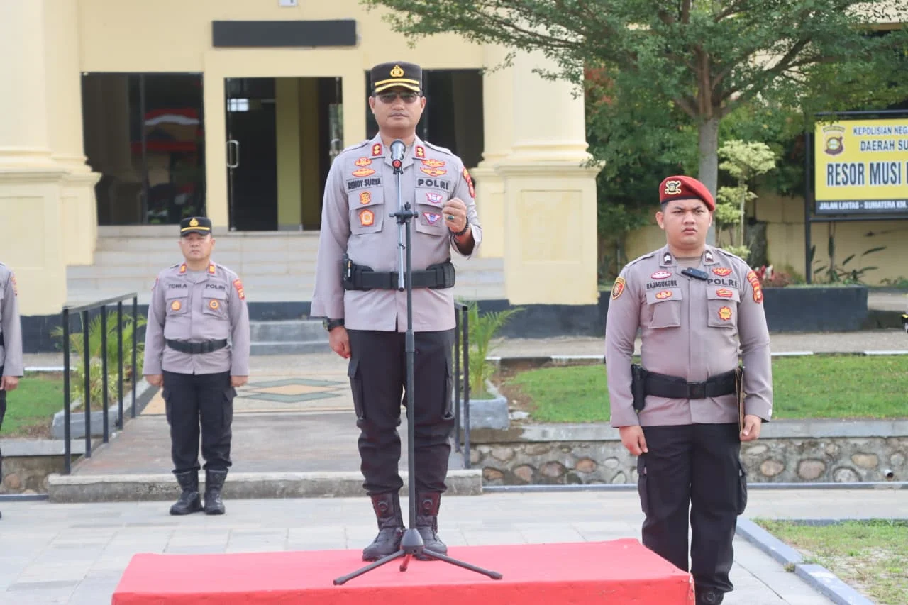 Upacara dipimpin langsung oleh Kapolres Musi Rawas Utara, AKBP Rendy Surya Aditama, S.H., S.I.K., M.H., dan diikuti oleh seluruh pejabat utama serta personel Polres Musi Rawas Utara. Kegiatan berlangsung secara khidmat dan dilaksanakan secara in absentia, mengingat keempat personel yang diberhentikan tidak hadir.