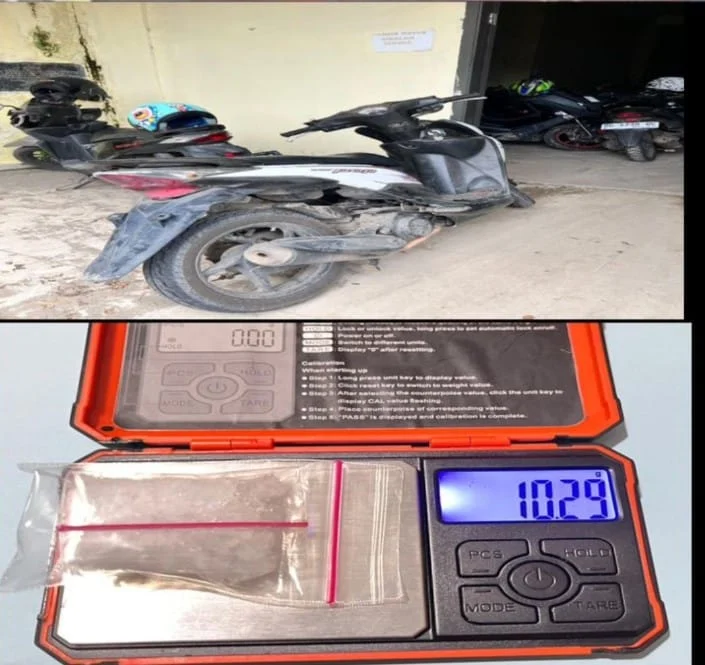 Barang bukti yang diamankan antara lain satu paket sabu seberat 10,29 gram, satu unit handphone, kotak rokok, uang tunai Rp70 ribu, serta sepeda motor Honda Beat Pop tanpa nomor polisi. Hasil tes urine juga menunjukkan tersangka positif narkotika.
