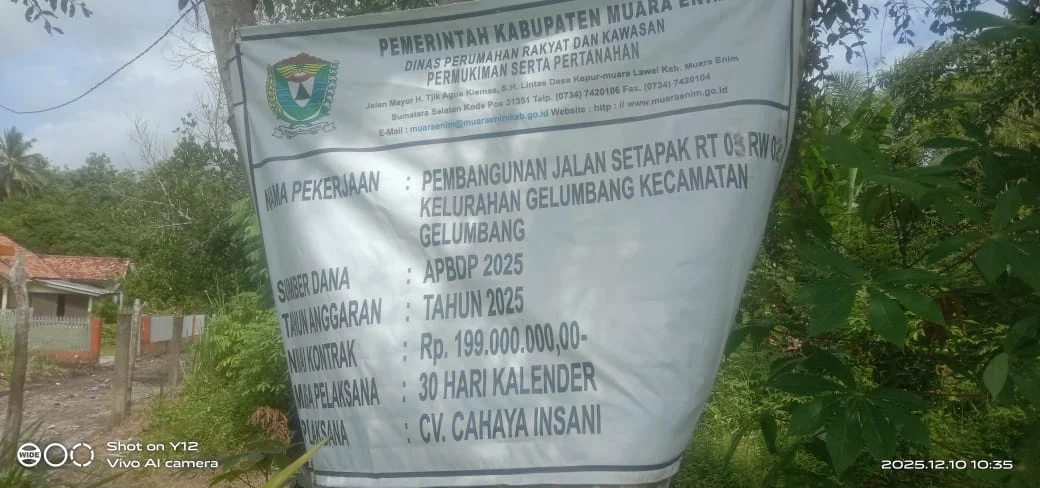 Muara Enim,zonanusantara.my.id – Proyek pembangunan jalan setapak di Kelurahan Gelumbang, yang tengah berjalan pada tanggal 10 Desember 2025, kini menjadi pusat perhatian publik.