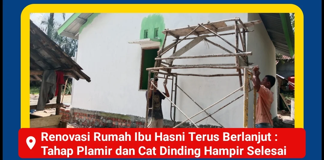 Ibu Hasni, seorang ibu rumah tangga berusia 42 tahun yang berstatus janda dengan lima orang anak, tidak dapat menyembunyikan rasa bahagianya saat rumahnya kini memasuki tahap akhir, yaitu plamir dinding dan pengecatan.