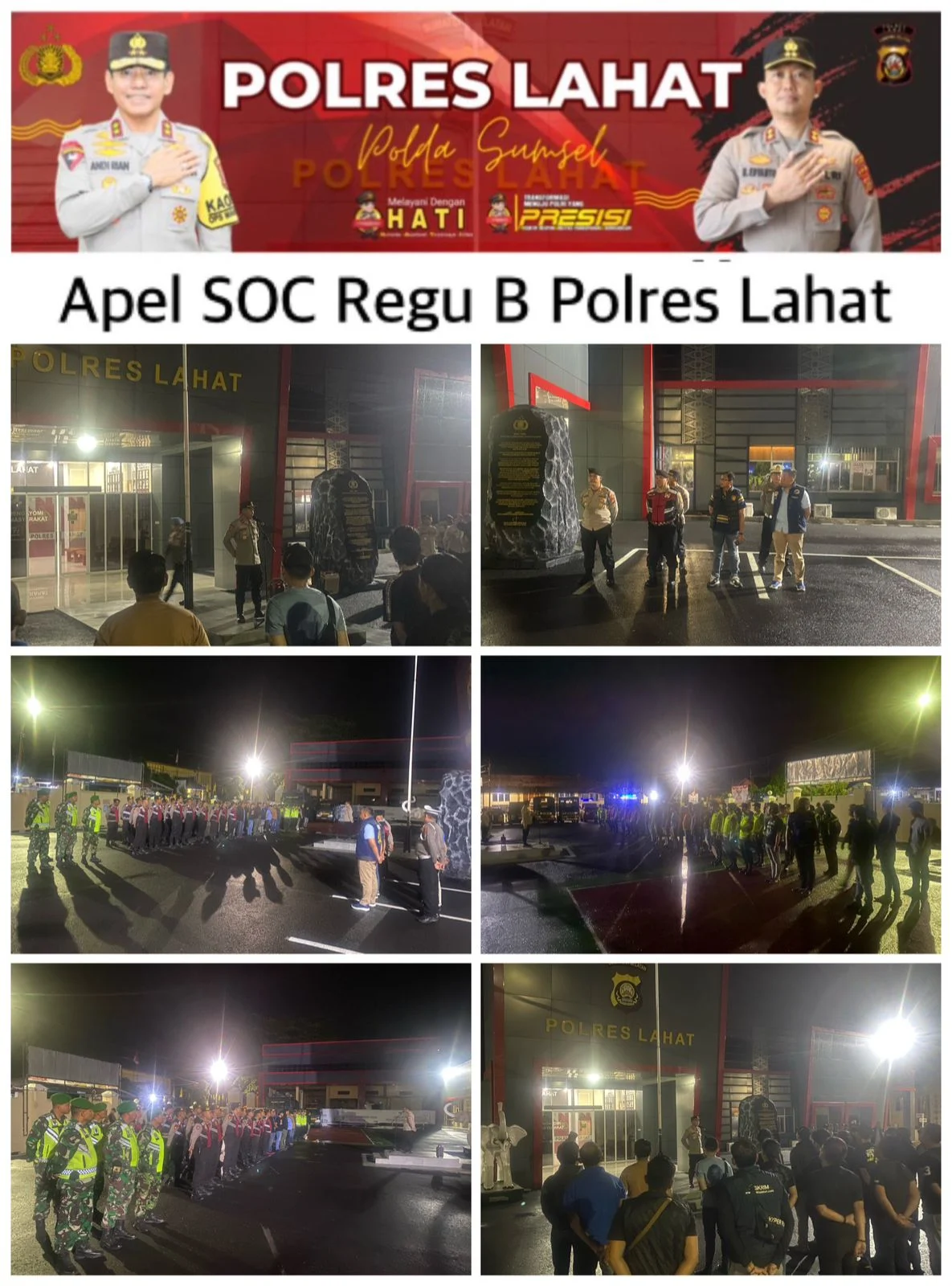 Kapolres Lahat AKBP Novi Edyanto, S.I.K., M.I.K. Diwakili Wakapolres Lahat kompol Liswan Nurhafis,SH memimpin langsung jalannya apel. Dalam arahannya, menekankan pentingnya kerjasama lintas instansi dalam mengantisipasi potensi gangguan kamtibmas, terutama pada malam akhir pekan yang biasanya diwarnai meningkatnya aktivitas masyarakat.