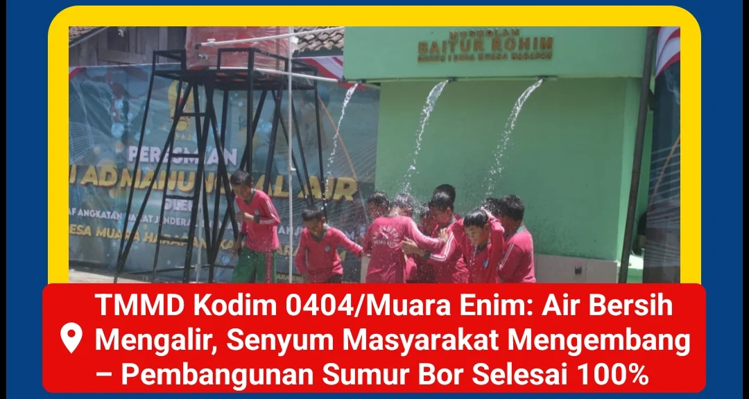Muara Enim – Harapan baru kini hadir bagi warga Muara Enim Program TNI Manunggal Membangun Desa (TMMD) yang digagas oleh Kodim 0404/Muara Enim telah menorehkan tinta emas dengan merampungkan pembangunan sumur bor yang sangat dinantikan. Rabu (05/11/2025).