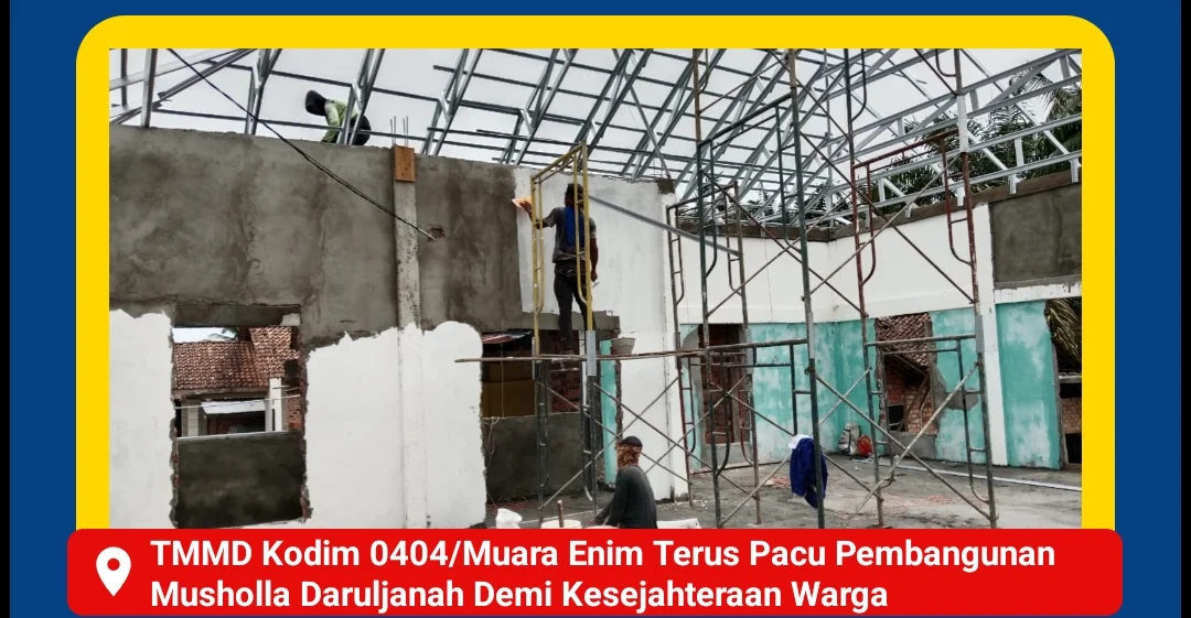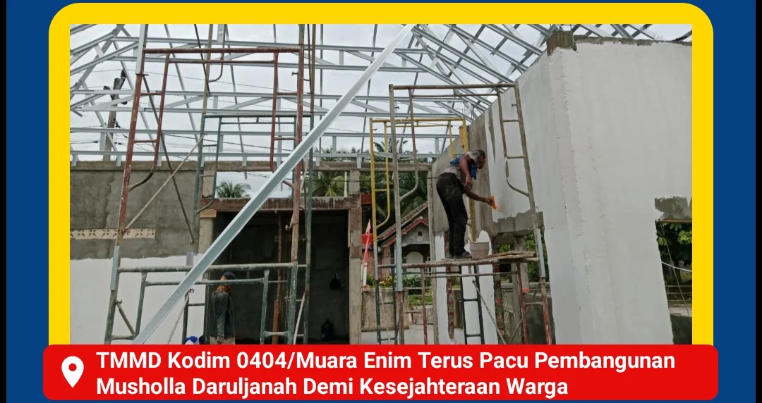 Muara Enim – Program TNI Manunggal Membangun Desa (TMMD) ke-126 TA 2025 yang diinisiasi oleh Kodim 0404/Muara Enim terus memacu pembangunan Musholla Daruljanah di Desa Harapan Jaya, Kecamatan Muara Enim. Pengebutan pembangunan ini merupakan wujud komitmen TNI dalam meningkatkan kualitas fasilitas ibadah dan kesejahteraan masyarakat di Kabupaten Muara Enim.Senin (27/10/2025).