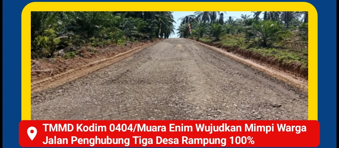 Muara Enim – Mimpi masyarakat untuk memiliki akses jalan yang layak kini menjadi kenyataan berkat Program TNI Manunggal Membangun Desa (TMMD) ke-126 TA 2025 Kodim 0404/Muara Enim. Dengan bangga, diumumkan keberhasilan pembangunan jalan penghubung tiga desa di Kabupaten Muara Enim.