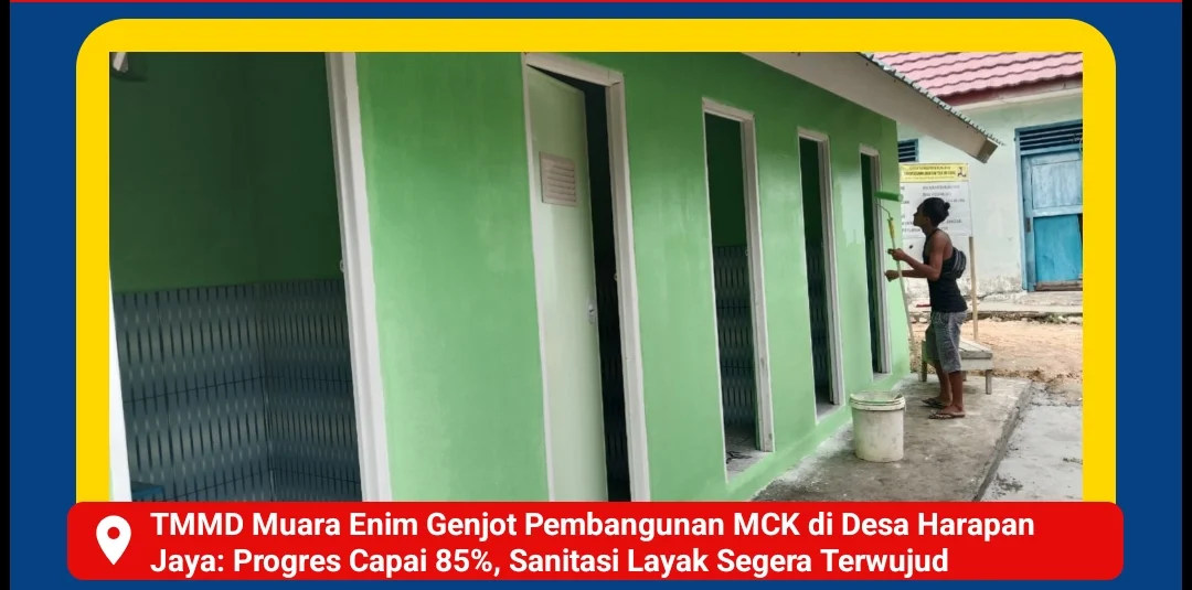 MUARA ENIM – Program TNI Manunggal Membangun Desa (TMMD) ke-126 TA 2025 Kodim 0404/Muara Enim terus berupaya meningkatkan kualitas hidup masyarakat melalui pembangunan infrastruktur berkelanjutan, dengan fokus utama pada pembangunan Mandi Cuci Kakus (MCK) di Desa Harapan Jaya, Kecamatan Muara Enim. Sabtu (25/10/2025).