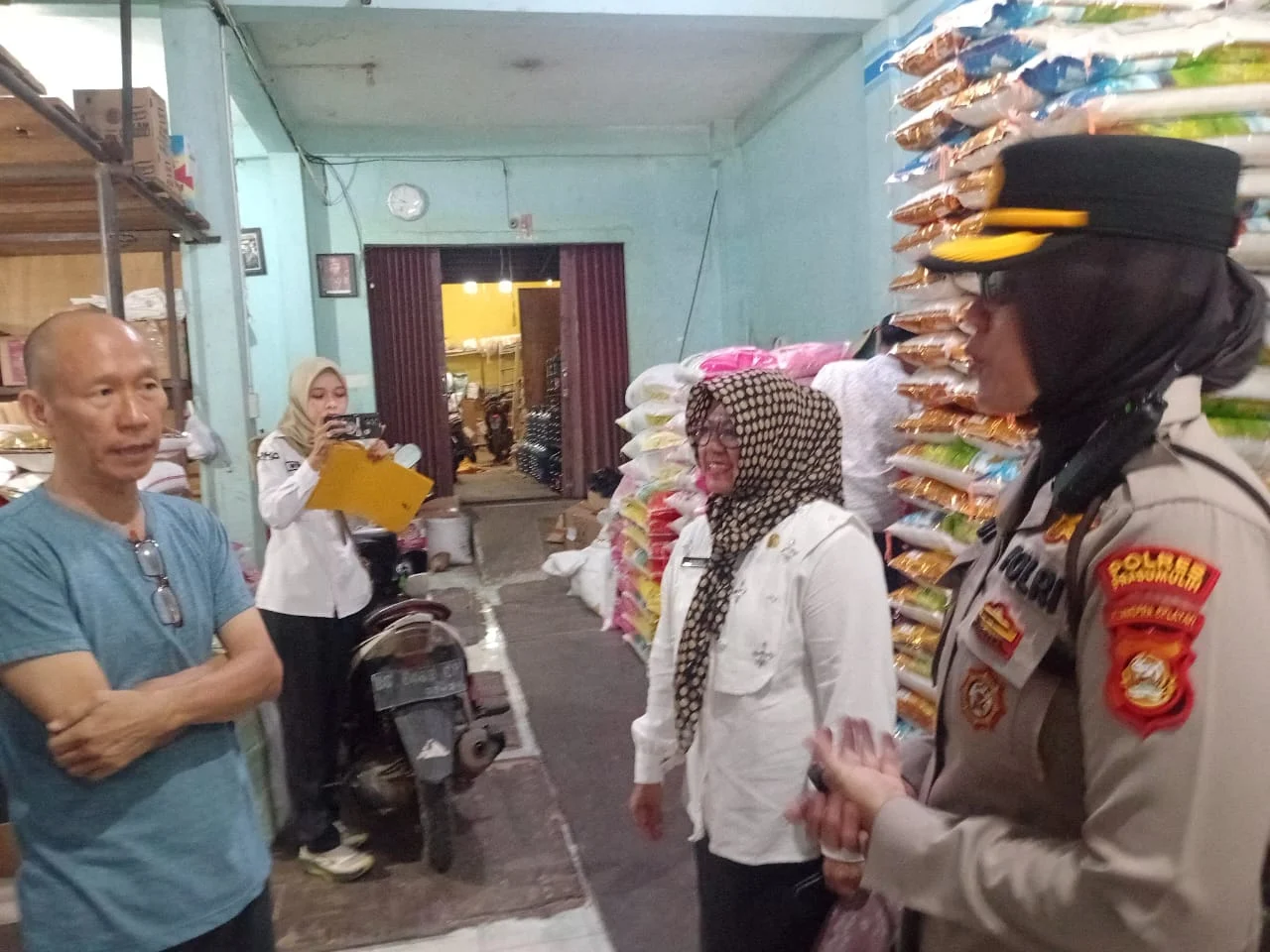 Prabumulih, ZonaNusantara.my.id | Wakapolres Prabumulih Kompol Cindy Helyadi bersama Kepala Dinas Perindustrian dan Perdagangan (Disperindag) Kota Prabumulih Sumarti, didampingi perwakilan dari Bulog, melakukan inspeksi mendadak (sidak) ke sejumlah pasar tradisional di Kota Prabumulih. Sidak ini bertujuan memastikan ketersediaan beras Stabilisasi Pasokan dan Harga Pangan (SPHP) serta mencegah penyalahgunaan karung beras SPHP.