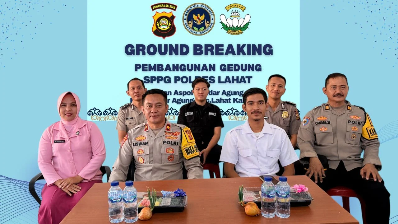 pada hari senen 29 desember 2025, Kapolres Lahat AKBP Novi Edyanto SIK.MIK yang di wakili Waka Polres Kompol Liswan Nurhapis SH, yang di dampingi Kasiwas AKP Candra Wibawa SH, ketua BGN, dan Mintra SPPG mengikuti giat Ground Breaking SPPG melalui Zoom Mett.